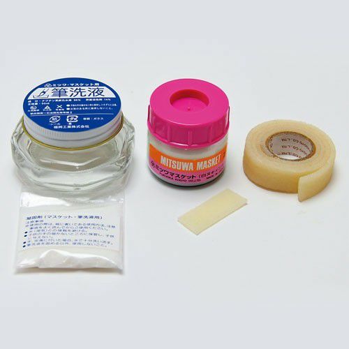 3点セットがあれば、白ヌキからペーパーセメントの除去、筆洗いと後始末まですべての作業がこのセットでできます。