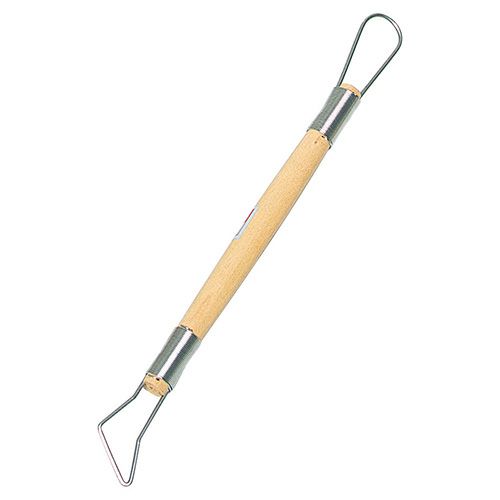 柄の両端にそれぞれ形状の異なる丸線ワイヤーを取りつけたへらで、彫塑制作時の部分的なかき取りや石こう取りの際、粘土のかき出しに使用します。