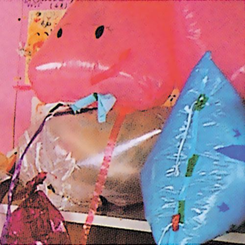 風船や好みの長さに切って中に空気を入れて両端を止めると