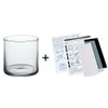 サンドブラストの制作に必要なガラス素材と素材に適したサイズのカッティングシート、トレーシングペーパー、カーボン紙に説明書と図案集を付けたセットです。