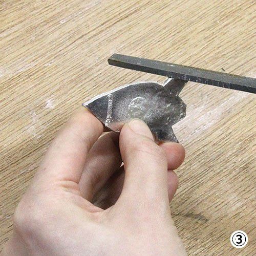 金床縁の溝で、金属を丸くしたり、角を曲げたりします。