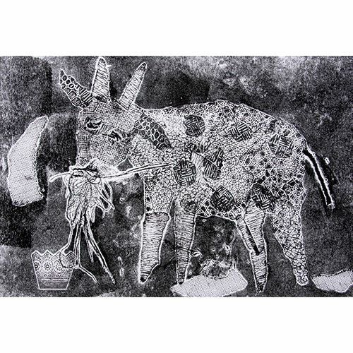 物に絵の具をつけ、紙などに押し付けて写す最も原初的な版画表現です